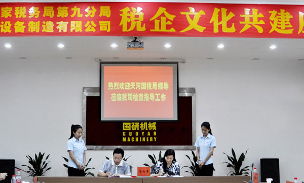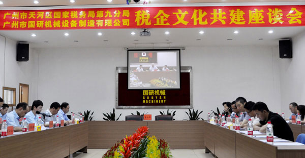 5月28日下午,广州市天河国税进出口税收管理科、天河国税第九分局和广州市国研机械设备制造有限公司“税企文化共建座谈会”在国研机械大会议室隆重召开。天河国税区局领导黄捷洪纪检组长、赖建华总经济师和区局相关科室、进出口税收管理科、九分局等领导出席了此次座谈会。