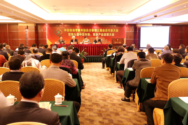 中国粮油学会理事长张桂凤出席会议并作了重要讲话。中国粮油学会首席专家名誉会长王瑞云到会作了题为《我国粮食生产、加工简况及发展趋势》的专题报告。来自全国各地米制品行业的企业家、专家学者、采购商、供应商代表参加了会议。