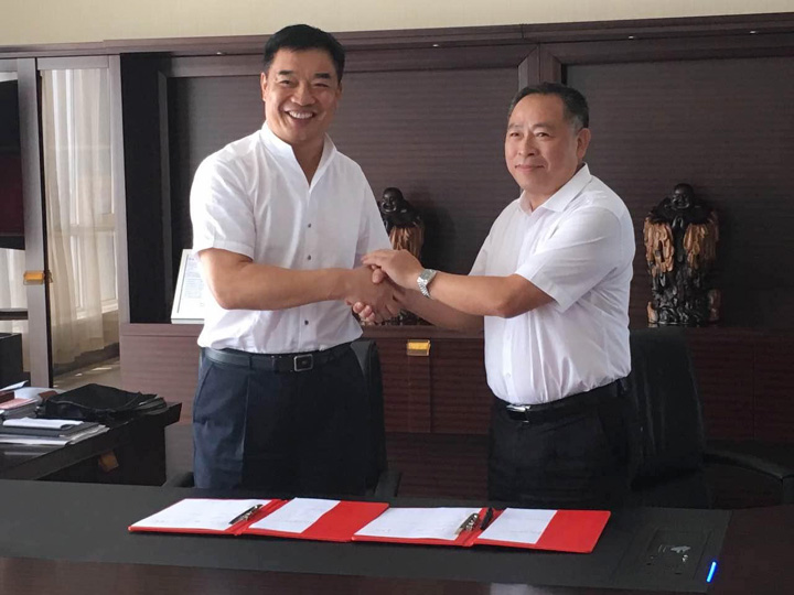 2017年8月5日上午11点,在河北邢台今麦郎集团总部,国研机械董事长王声位与今麦郎集团董事长范现国共同签署了广州市国研机械设备制造有限公司与今麦郎面品有限公司建立战略合作伙伴关系的协议。