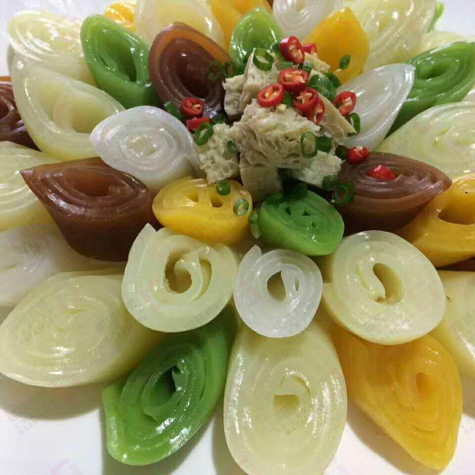 近来有媒体调查后发现与2000年相比,如今一份最普通的凉皮价格已上涨至六元以上,除去经济发展推动物价提升,近年来调价主要因素是人工成本增高。以陕西凉皮为例,使用人工制作需要经历五六道洗面筋工序,将所得面糊静置分层后倒掉上层清水,倒入模具蒸熟,随后晾凉取出切条。凉皮的制作过程需人工不停揉搓面粉,搬弄器具,蒸汽温度高,人工较为辛苦,在劳动力成本愈发高涨的现今,愿意做这种体力活的人更是难以雇到!这就急需自动凉皮机的助力,从生产力来看,人工制作凉皮少说需要一天的时间进行制作,自动凉皮机却能够在一小时内完成上千斤的产品,生产效率大大提高。国研凉皮生产线可从和面、洗面、储桨、搅拌抽桨、刮桨、蒸片、切条、冷却输送、定长切断到成品流程生产,人工只需要物料转移和收凉皮即可。