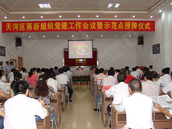 会上,天河区委常委、组织部部长潘文捷作了重要讲话,她说,在中国共产党成立88周年之际,我们在国研机械举行全区“两新组织”党建工作现场会暨党建工作示范点授牌仪式具有重大意义,并对国研机械等10个获得党建示范点单位再次表示了热烈的祝贺。潘部长在讲话中总结了天河区近年来两新组织党建工作情况,并对下一步的党建工作提出了要求:一是克服松懈思想,继续抓好“两新组织”党组织组建工作;二是加大管理力度,推进“两新组织”党组织规范化建设;三是加强教育管理,切实抓好“两新组织”党员队伍建设;四是围绕服务发展,发挥“两新组织”党组织政治核心作用;五是提高能力素质,加强“两新组织”党务工作者队伍建设。潘部长勉励大家要在市委和区委的坚强领导下,坚定信心,以求真务实的作风、坚强有力的措施、积极主动地工作态度,探索“两新组织”党建工作地新方法、新举措,努力开创我区“两新组织”党建工作新局面,为构建和谐天河做出新的贡献。